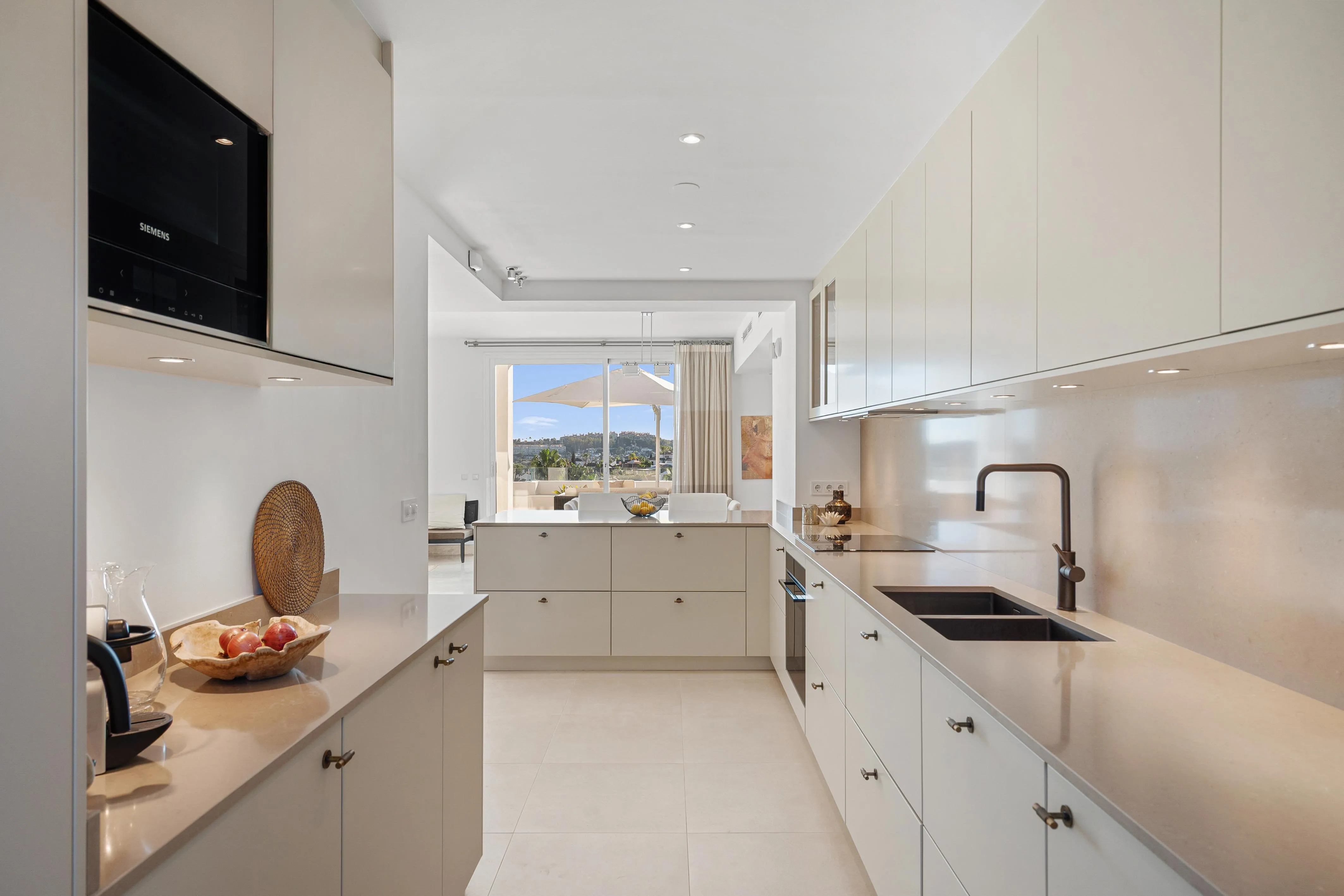 The highlight of this property is its expansive terrace areas, including a spectacular rooftop terrace with the option to install a plunge pool or create your own outdoor gym. From here, enjoy breathtaking panoramic views over Nueva Andalucía, the iconic La Concha Mountain, and the glittering Mediterranean Sea.