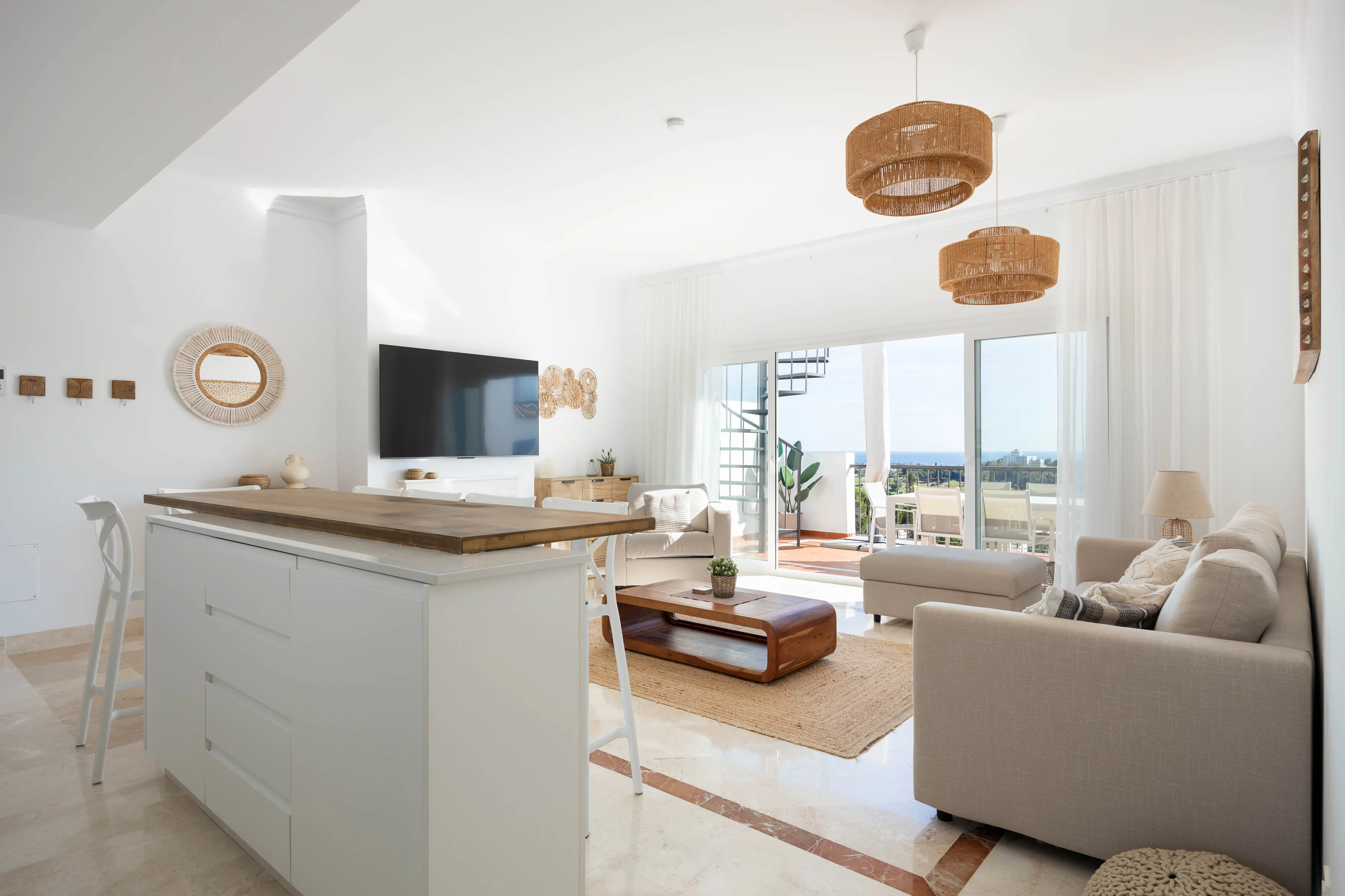 Introducing a truly exceptional south-facing penthouse in Paraiso Pueblo, Benahavís, where luxury living meets panoramic sea views. With a generous build area of 180 sqm, this fully furnished residence offers bright, open interiors complemented by extraordinary outdoor spaces that elevate the lifestyle experience.